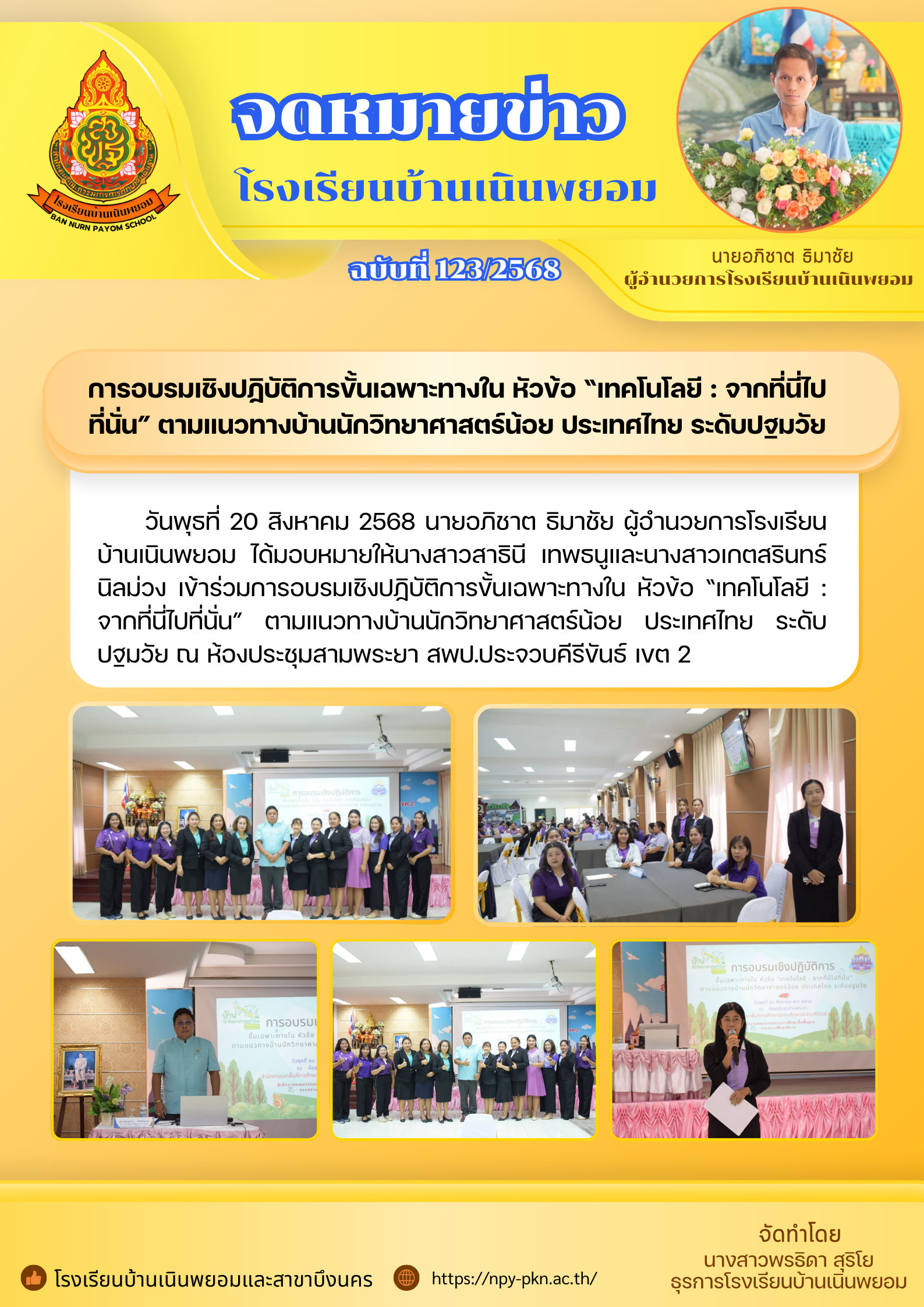 การอบรมเชิงปฏิบัติการขั้นเฉพาะทางใน หัวข้อ ?เทคโนโลยี : จากที่นี่ไปที่นั่น? ตามแนวทางบ้านนักวิทยาศาสตร์น้อย ประเทศไทย ระดับปฐมวัย