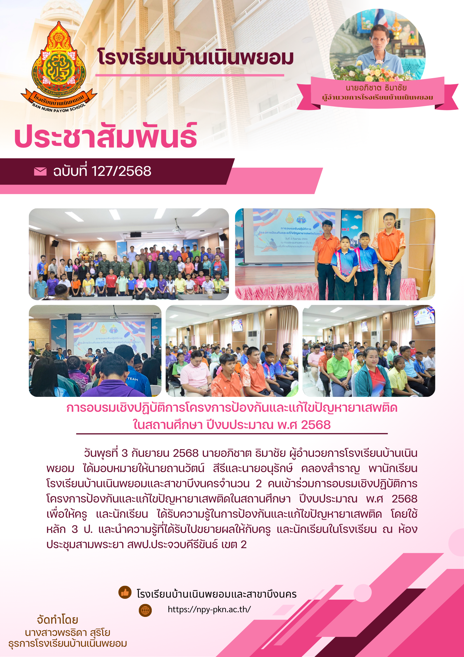 การอบรมเชิงปฏิบัติการโครงการป้องกันและแก้ไขปัญหายาเสพติด ในสถานศึกษา ปีงบประมาณ พ.ศ 2568