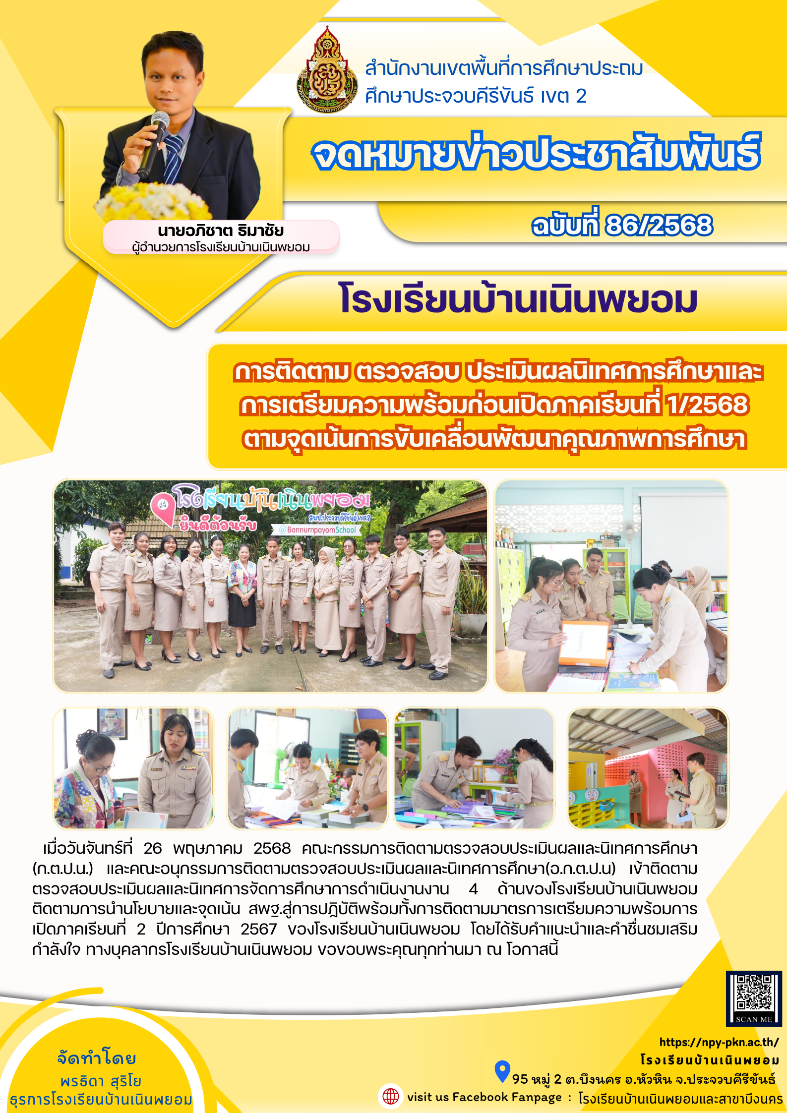 การติดตาม ตรวจสอบ ประเมินผลนิเทศการศึกษาและการเตรียมความพร้อมก่อนเปิดภาคเรียนที่ 1/2568 ตามจุดเน้นการขับเคลื่อนพัฒนาคุณภาพการศึกษา