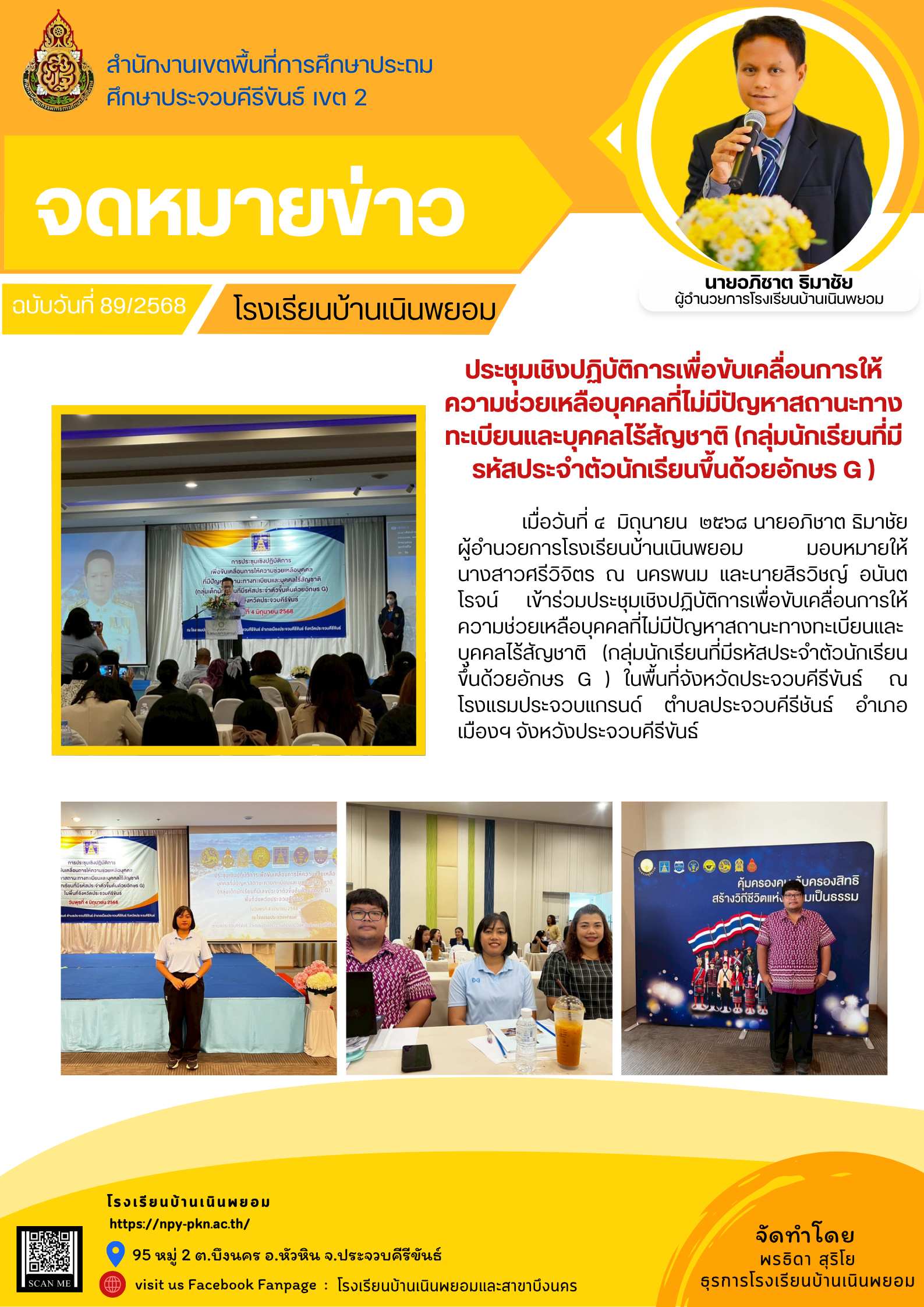 ประชุมเชิงปฏิบัติการเพื่อขับเคลื่อนการให้ความช่วยเหลือบุคคลที่ไม่มีปัญหาสถานะทางทะเบียนและบุคคลไร้สัญชาติ (กลุ่มนักเรียนที่มีรหัสประจำตัวนักเรียนขึ้นด้วยอักษร G )